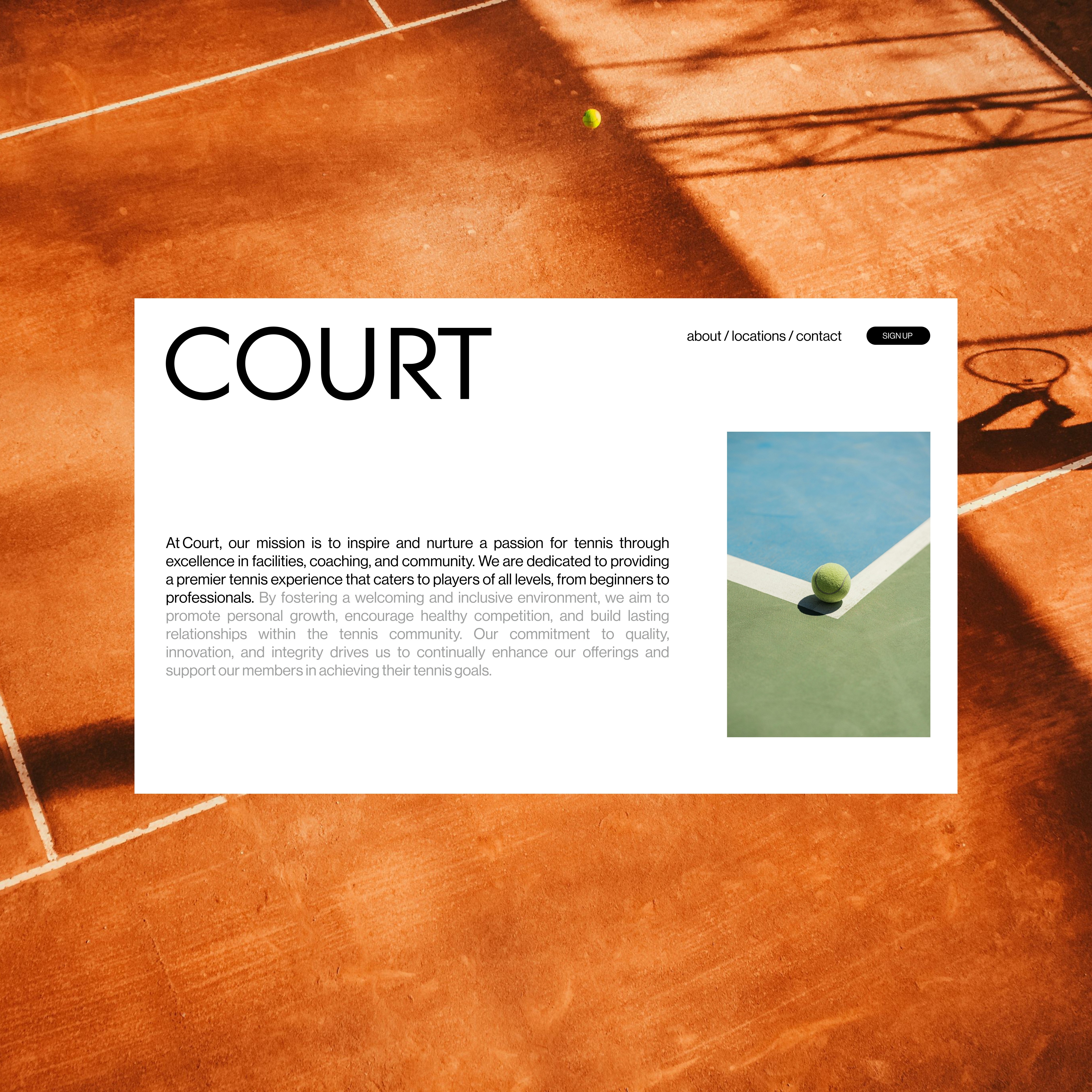 We worked with Court—a premier destination for tennis, pickleball, and padel enthusiasts—to craft a bold, contemporary brand identity that captures the thrill of the game and the spirit of community. Blending the sophistication of tennis, the fast-paced fun of pickleball, and the global appeal of padel, we created a visual and digital presence that positions Court as more than just a club—it’s a lifestyle.